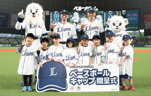 外遊びのきっかけにと、2018年から、埼玉県内全域の小学生へ「ライオンズオリジナル・ベースボールキャップ」を継続的にプレゼントする取り組み。