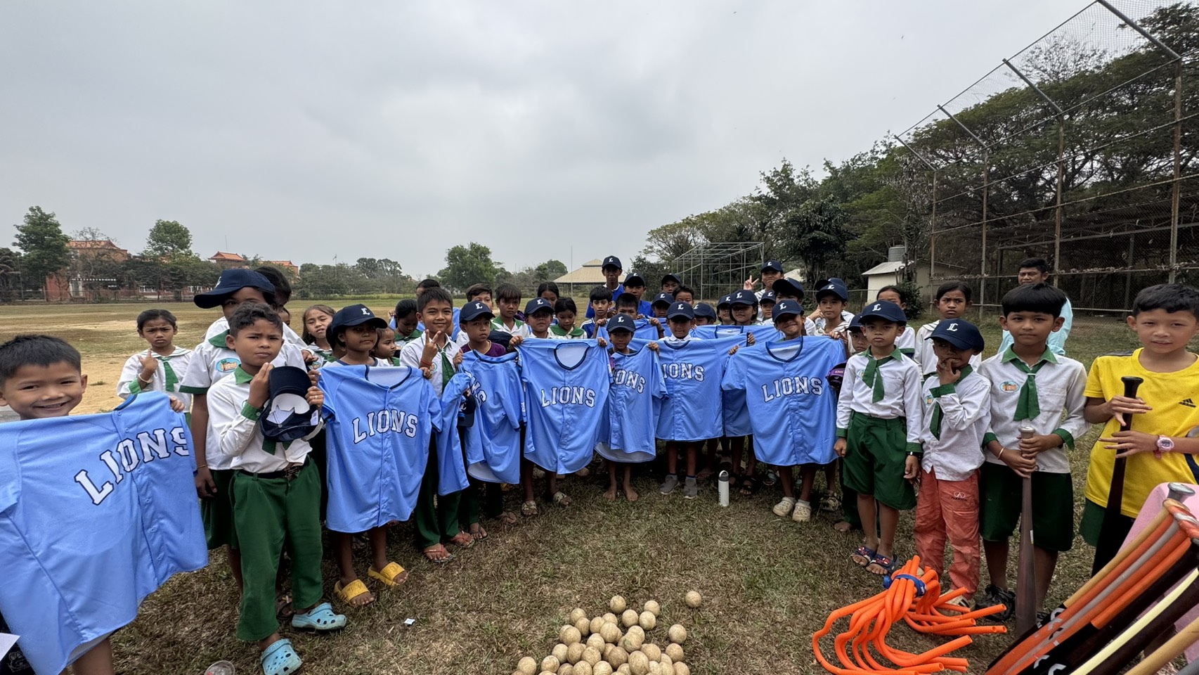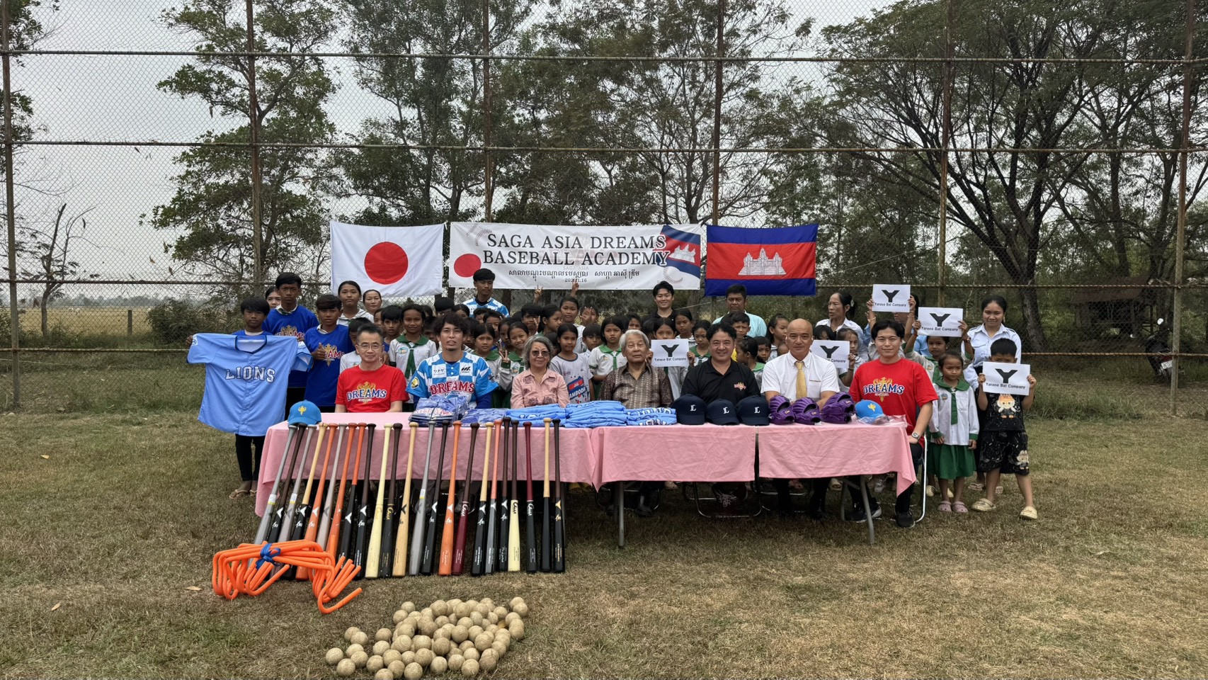 今回の寄贈式は、カンボジア・コンポントム州に2026年1月に開校した「ドリームズ野球アカデミーカンボジア校」の開校式に合わせて行われました。開校式には、8歳から12歳までの子どもたちが70名参加し、野球に触れ合う貴重な機会となりました。
