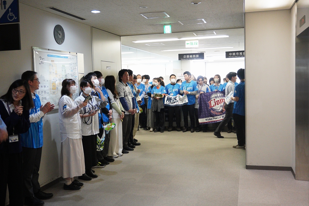 さらに、所沢市役所では、職員の皆さまによるサプライズの花道で温かいお出迎えをいただき、地域に支えられて開幕を迎える重みを改めて感じる機会となりました。